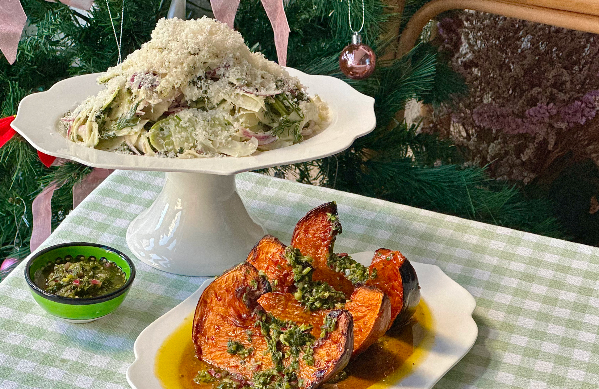 Learn how to make her hearty roasted pumpkin with massaman curry sauce and her fresh and fabulous fennel, apple & dill salad. Your loved ones will be sure to go back for seconds.